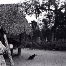 Black and white exterior photographic print created from negative 2005.27.196. Notes from photographer: Mrs. Billie and Josie's garden, Big Cypress Reservation. This print was created from the original negative in 2005. |